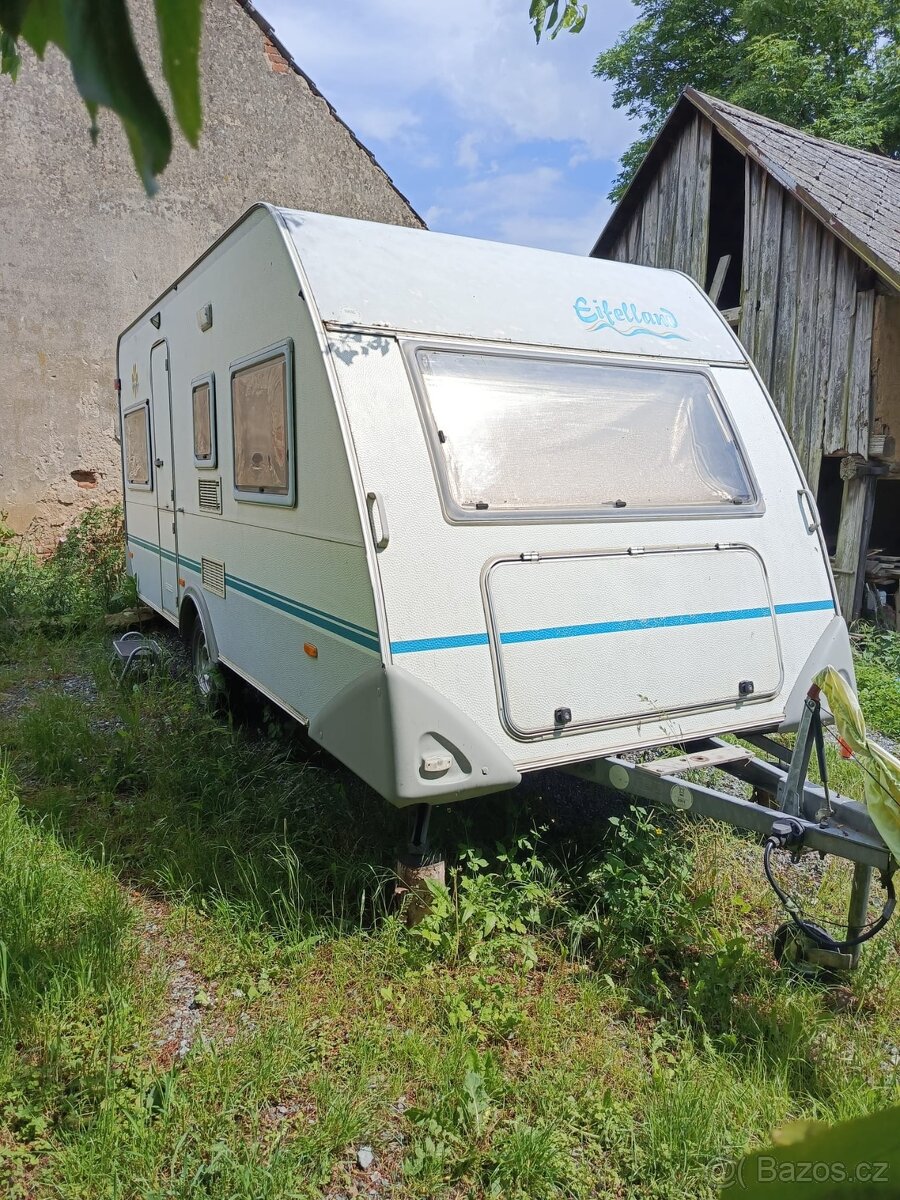 Prodám karavan Knaus Eiffeland Holiday 460 Rok provozu 1999 Nejvyšší přípustná hmotnost 1200kg Délka 6500mm, šířka 2170mm Rozkládací rohové sezení na dvoulůžko, koupelna s chemickým WC, odtoková vanička, umyvadlo. Dřez, plynový tří plotýnkový sporák. Lednice na 12V, plyn, 220V Plynové topení Trumatic + rozfuk Uzavíratelná ložnice s velkou matrací ( možno přeměnit na sezení) Závěsy, záclony, sítě proti hmyzu, thermo rolety. Součástí předstan. Spoustu úložného prostoru. Nejvyšší dovolená rychlost 100km/h