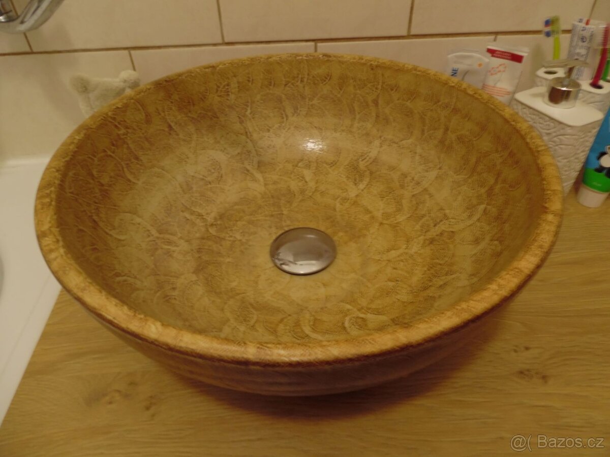 Prodám umyvadlo SAPHOPI010, průměr 42cm, kulatá výpust 4,5cm, kupovaný v r.2018(výměna za jiný). Hezký hnědý dekor, nepoškozený. Prodávám pouze umyvadlo. PC: 3500Kč.