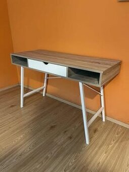 Pracovní stůl ABBETVED se zásuvkami, dekorační dýha a kov. Rozměry pracovní desky 120 x 48 cm, výška desky 13 cm, výška celého stolu 76 cm. Využívala jsem ho pouze chvíli, je ve výborném stavu. Předání možné ve Zdounkách u Kroměříže.