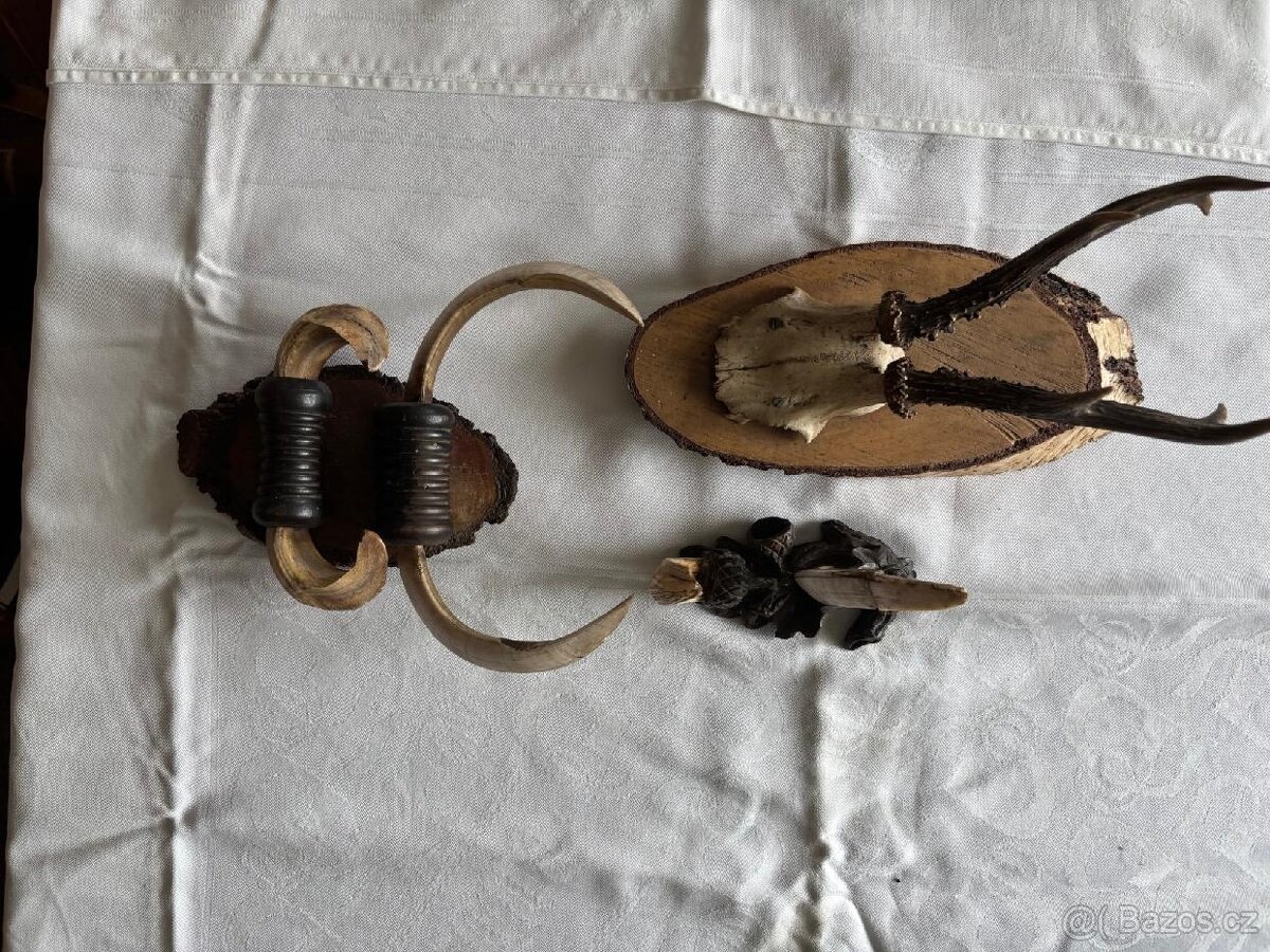 Prodám sadu paroží ze srnce a kly z divočáka. Odběr ve Strání