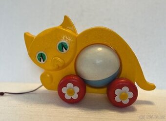 Nabízím starou retro tahací hračku Kočka s koulí Výrobce SMĚR Zásilkovna 80,- Kč
