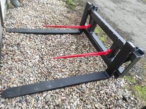 Prodám vidle na palety (paletizační) norma ISO2, rámeček včetně profilu, uchycení euro (např. nakladač traktoru). Nosnost 2,5t, kapsy pro hroty na balíky, délka kovaných vidlic 120cm. Mohu poslat na paletě. Cena: 16 000,- bez DPH Tel.775529294