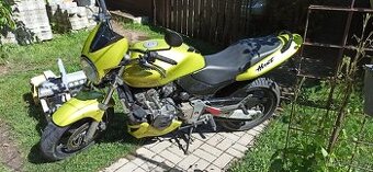 Prodám Horneta. RV. 2000. 70Kw. najeto 48368 km. Minulý rok nová přední pneu a celolak. Zadní pneu 60%. lze nastartovat a poslechnout motor. Moto potřebuje: seřízení ventilových vůlí a aktuálně nedobíjí Jezdí krasně. Neprodával bych, ale potřebuji finance. Při rychlém jednání sleva jistá.