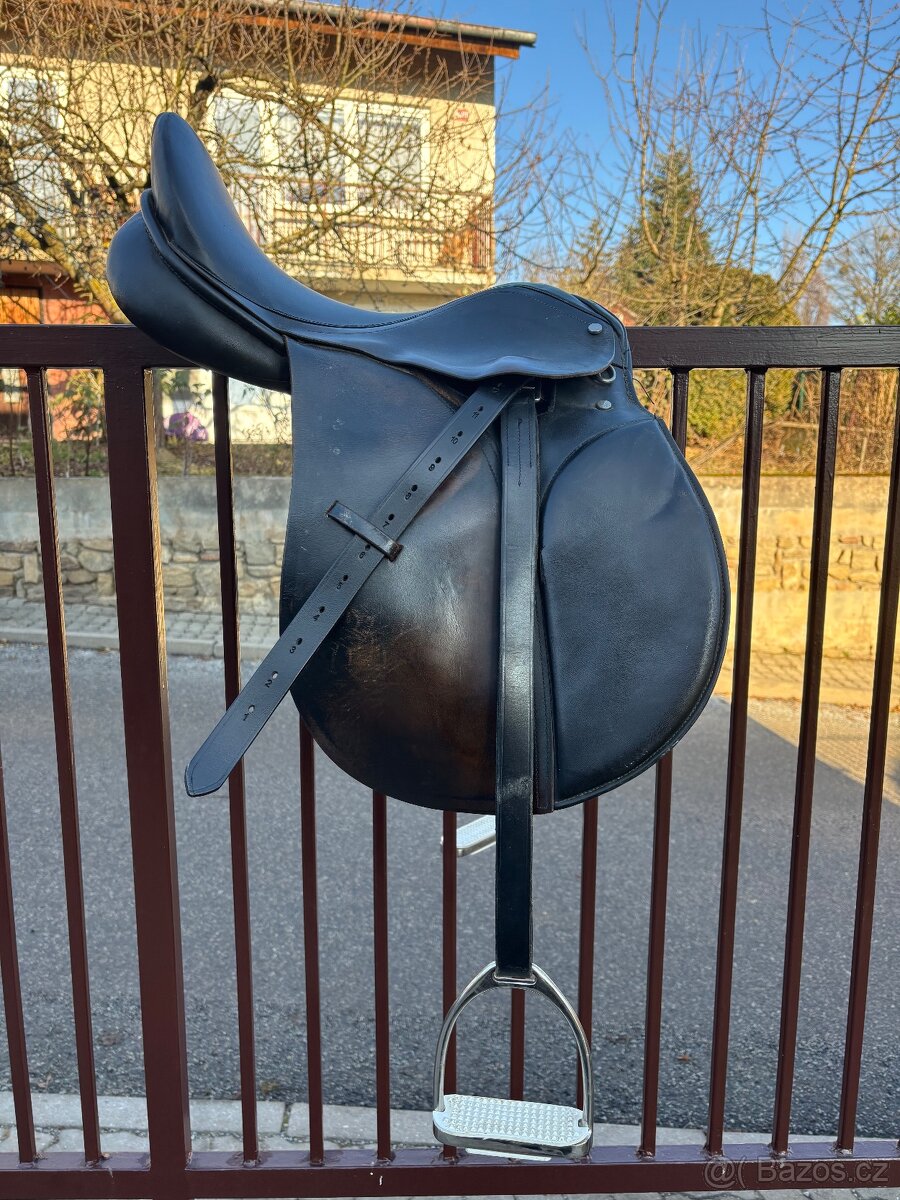 🐎 Prodám kožené sedlo – černé Prodám černé kožené sedlo, klasického anglického typu (skokové / univerzální). Velikost posedlí: 17,5” Komora: 2 Sedlo je plně funkční, používané, s běžnými známkami opotřebení odpovídajícími stáří (viz foto). Vhodné pro rekreační ježdění. Součástí je třmenový řemen a třmen. Cena: 3 000 Kč Lokalita: Jindřichův Hradec Kontakt: 702 032 240 📸 Fotky přiloženy.