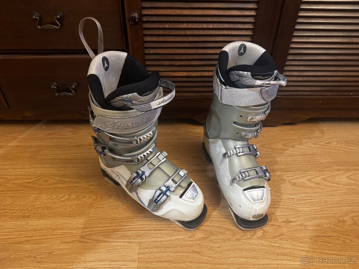 Dobrý den, za symbolickou cenu nabízím použité dámské přeskáče Atomic iTL 80. Velikost odpovídá cca 41. Mají samozřejmě už něco za sebou. Také mají vyhřívané vložky. Lze používat "normálně", případně dokoupit baterie a používat s vyhříváním (funkčnost vložek je neznámá).