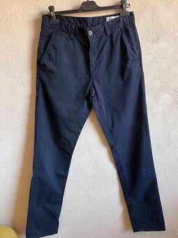 Prodám moc pěkné kalhoty, tmavě modré barvy. Vhodné do společenosti. Syn měl 2x na sobě . Čisté, nezničené, nevybledlé. Velikost viz. foto. Jsou na štíhlejší postavu. Pokud bude zájem, poměřím je. Pořizovací cena byla 1050,- nyní 500,-