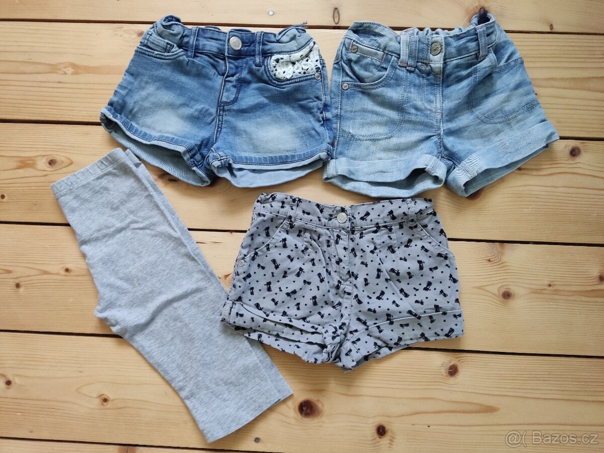 Dívčí kraťasy: na kočky - velikost 3 roky. Riflové - velikost jedny 2-3roky, druhé 122. Všechny mají v páse možnost regulaci nastavitelnou gumou. Rozměry viz fotky, ale u nás nošeny cca ve stejnou dobu. Cena riflové 40 kč/ks, menžestrové 20kč. Úpletové prikládám zdarma.