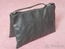 Jednoduchá, lehká, malá koženková kabelka. Po líci zdobená prošívanými čtverečky, po rubu hladká. Je ušitá jako jeden vak, přeložený napůl, takže vzniknou dvě kapsy / oddíly, které se k sobě spojí suchým zipem. V přelomu je všitý zip a uchycený řemínek přes rameno pevné délky 90 cm. Pohledový rozměr kabelky 24 x 15 cm. Univerzální barva. Handmade. Dá se nosit přes rameno, nebo jako psaníčko (řemínek lze zasunout dovnitř). Nemá podšívku, ale to nijak nesnižuje její vzhled či vlastnosti. Na to, jak je malá, je velice šikovná a vejde se do ní překvapivě dost věcí ;-) Používaná ke společenským příležitostem, ale stále jako nová a bez závad.
