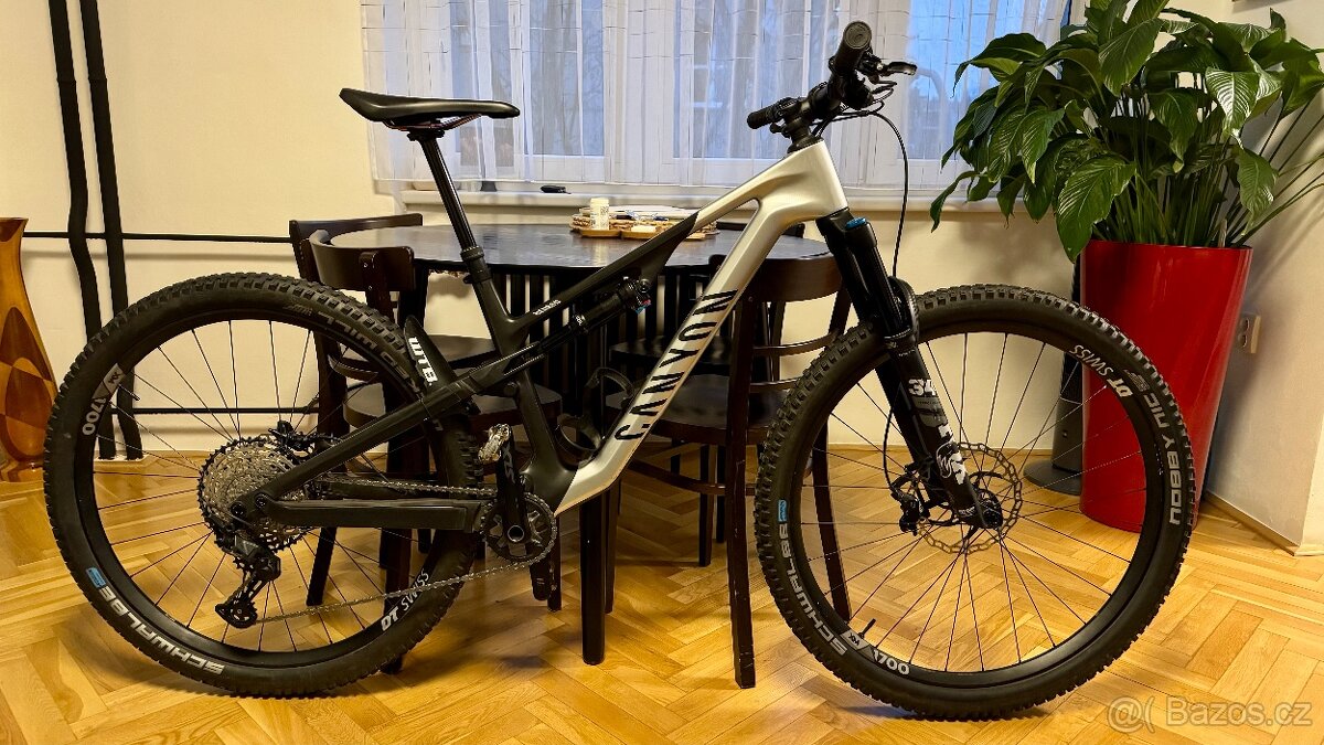 Prodám Canyon Neuron CF8 jetý jednu sezónu synem, který z něj vyrostl. Na rámu je z většiny plochy originál polep. Kolo vždy dostávalo co potřebovalo. Nikdy nejelo žádný závod, bylo využíváno na trailech a na vyjížďky. Původní faktura, návody v balení. Seřízeno, nachystáno pro nového majitele. Možnost výběru pedálů buď SPD nebo platformy Crankbrothers, Servis vidlice: - u Asasina v Brně 7/2025, od té doby najeto cca 300 km Oproti sérii: - Galfer kotouče 203mm vepředu, 180mm vzadu - Shimano XT řadící páčka Aktuálně vyměněno: - P+Z brzdové destičky Shimano + vyměněna brzdová kapalina (originál Shimano) - nový řetěz - nové mléko - nové gripy Bontrager Ke kolu navíc: - 2 x původní SLX kotouč Ice tech 180mm - 1 x mírně jetý Galfer kotouč 203 mm - nášlapné pedály Shimano XT - Canyon držák na pití - P+Z blatník WTB - minipumpa Crankbrothers Rám-Canyon Neuron Superlehký karbonový celoodpružený MTB Rozměry Osy: 12x148 mm Materiál: Karbon Weight: 2.46 kg Tlumič-FOX Float DPS Performance Wei