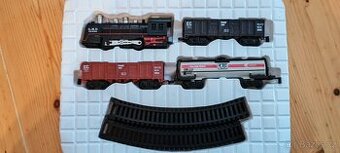 Vláček minimálně používaný jako nový,koleje ovál, mašinka na baterie se zvukovými efekty cena 400kč.