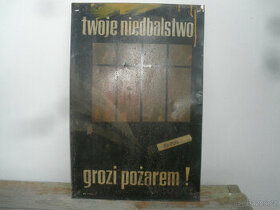 Stará plechová cedule,není smaltovaná ale nastříkaná,nápis v polštině rozm.60X40cm. stav viz foto.Osobní předání Mělnicko nebo posílám poštou