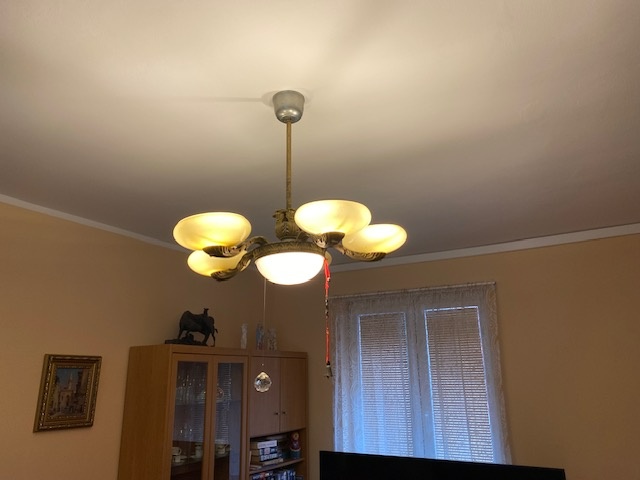 pětiramenný starožitný lustr asi z roku 1920