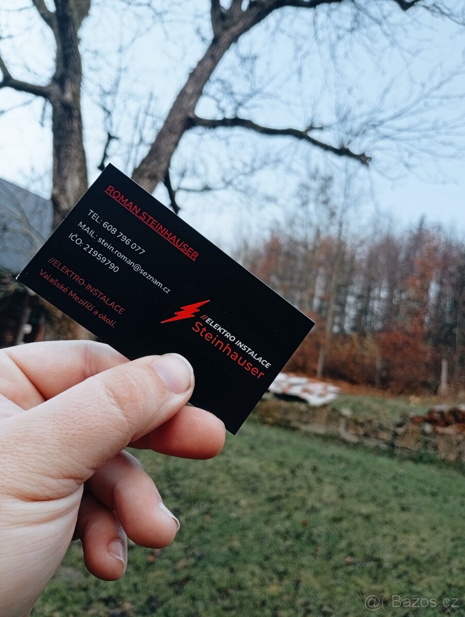 Cena: Dohodou. Provádím kompletní elektro instalace, rekonstrukce, opravy atd. Působím v okolí Valašského Meziříčí, Vsetína a Rožnova pod Radhoštěm. V případě zájmu neváhejte kontaktovat. Tel. 608 796 077 Mail. [email protected]