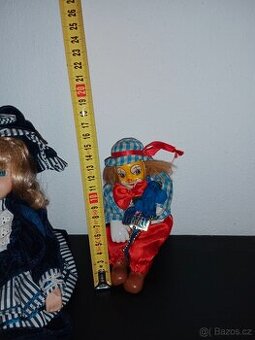 Šašek a sedící panenka. Cena dohromady 250kč Velikost zhruba 20cm
