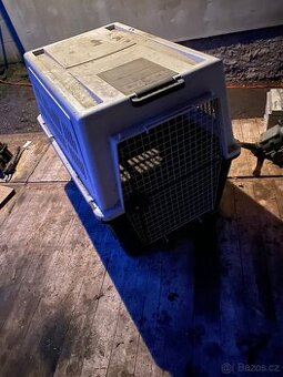 Plastový přepravní box na střední plemeno psa, opravováná, ale na funkčnost nemá vliv. Leží nevyužito, dvakrát jsme v tom převáželi. Původní cena 4500,- nechám za 1500,-