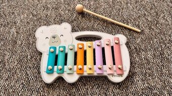 Dětský xylofon je skvělý hudební nástroj, který podporuje rozvoj hudebního sluchu, rytmu a koordinace ruka-oko u detí. Tento nástroj se skládá z barevných dřevěných lamel, které se úderem hůlek rozezvučí a vytvářejí melodické tóny. Hračky tohoto typu pomáhají dětem objevovat zvuky a tóny, čímž stimulují jejich kreativitu a představivost. Celý produkt je vyroben z lakovaného dřeva a je natřen netoxickými barvami. Parametry produktu: • Hračka je určena pro děti od 18 měsíců • Rozměr: délka: 26 cm x výška: 18,2 cm x šiřka: 4 cm