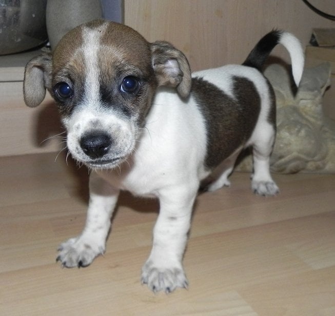 Nabízime krásně štěňátko fenečku Jack Russell teriér má 8 týdnu je řádně dvakrát odčervená jé hravá mazlivá Milá k dětem odběr ihned k více informací po telefonu 730230549