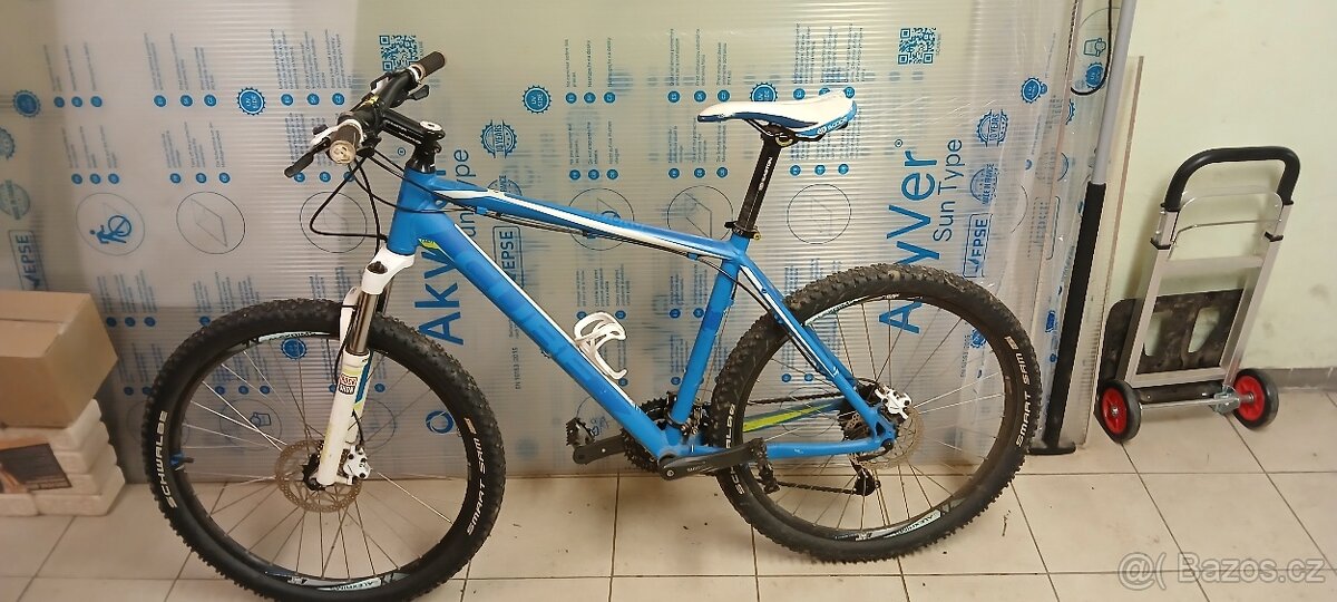 Prodám zachovalé a nevyužité horské kolo CUBE ANALOG velikost 20. Výška postavy 175cm. Rám: Alu Lite 6061 AMF RFR-Geometry, disc onlyBarva: blue ‘n’ white, grey ‘n’ whiteVidlice: Rock Shox XC 28, 100mm, PoplocHlavové složení: FSA No.10 semi-integrated, 1 1/8"Představec: Easton EA30 Oversized, Lenkerklemmung 31.8mm, 8°Řidítka: Easton EA30 Lowriser Oversized, 660 mmGripy: CUBE Performance GripPřehazovačka: Shimano Deore RD-M592 SGS Shadow, 9-speedPřesmykač: Shimano Alivio FD-M430, Top Swing 34.9mm, 9-speedŘazení: Shimano Acera SL-M390, Rapidfire-Plus, 9-speedBrzdy: Shimano BR-M395 hydr. disc brake (160/160mm)Kliky: Shimano Acera FC-M371 44×32×22T, Innenlager BB-UN26 123mmRáfky: RFR ZX24Přední nába: Shimano HB-RM66 Centerlock DiscZadní nába: Shimano FH-RM66 Centerlock DiscPláště: Schwalbe Smart Sam 2.25Pedály: Alu PD-971Sedlo: Scape Active 8Sedlovka: Easton EA30 31.6*400mmUpínák sedlovky: RFR Varioclose 34.9mmHmotnost: 13,6 kg