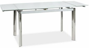 Podáme rozkládací jídelní stůl v ideálním stavu. Je vyroben z tvrzeného skla bílé barvy, nohy stolu jsou z chrómu. Stůl lze rozložit po obou stranách, je určený až pro 6 osob. Před rozložením 80 x 120 cm, po rozložení 80 x 180 cm. Výška:76. Původní cena: 7 500 Kč Osobní odběr na Přikopě 31, Praha 1
