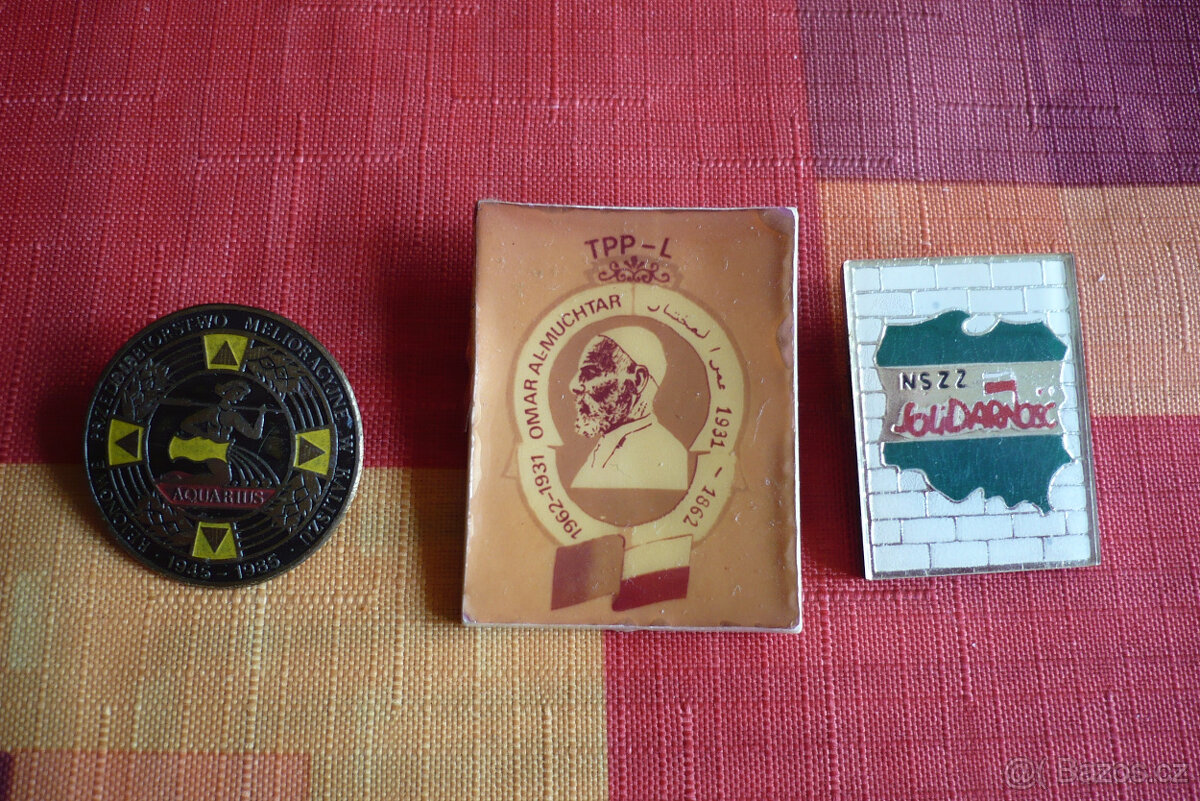 Cena: Nabídněte. Polský odznak Solidarita asi 1989 za 50,-Kč, odznak s duchovním Omar Al Muchtar za 120,-Kč. Omar al-Mukhtar (asi 1860-1931), národní hrdina Libye. Velký polský odznak na čepici, do roku 1989, za 80,-Kč. Polské vyznamenání Záslužný kříž, do roku 1989, za 120,-Kč. Polsko Odznak Wojskowej Akademii Politycznej im. Feliksa Dzierżyńskiego, od 1961, Warszawa, postříbřený tombak, email, originál za 160,-Kč. Odznak z cvičení ŠTIT 1972, je za 240,-Kč. Odznak ČSM čestný odznak, super stav, za 60,-Kč. Odznak vzorný voják, již není, vzorný milicionář, super stav, za 180,-Kč. Odznak Lidové milice hvězda, super stav, za 380,-Kč, čepicový odznak Lidové milice, chybí pacička, za 60,-Kč, čepicový SNB, super stav, za 60,-Kč, Výkonnostní odznak PPOV, krásný sbírkový stav, smalt nenarušen, cena 110,-kč, Odznak za upevňování bojového přátelství, super stav, těžký typ na matku, již není. Odznaky 7 kusů, každý za 30,-Kč. Odznak Pionýr 50,-Kč s matičkou, vzorné družstvo 80,-Kč, odznak 20 let ČSR (1938) za 180,