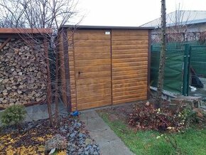 Zahradní domek 2,5×2×2,10 – zlaty dub (imitace dřeva), spád od vrat dozadu, jednokřídlé Střecha (Barva) čokoládová hnědá BTX 8017 MAT Dveře jednokřídlé dveře, Zámek FAB s malým klíčem Dveře (Š x V) šířka 1,00 m; výška 2,00 m Dveře (Barva) Imitace dřeva – zlaty dub Dveře (Fasáda) Široký vodorovný trapez (180 mm) Konstrukce chráněný základní barvou, úhelník vyztužený uzavřeným profilem Dodatečné (započítáno v ceně) Kování