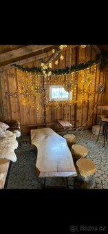 Masivní konferenční stůl z jednoho kusu dřeva – originál s přírodním charakterem Nabízím designový konferenční stůl vyrobený z masivní dřevěné desky s přiznanou přírodní hranou (live edge). Každý detail kresby dřeva je originál – žádná sériová výroba, ale poctivý kus nábytku s výrazem. Deska je pečlivě opracovaná a ošetřená tak, aby vynikla přirozená struktura a odstíny dřeva. Stabilitu zajišťují pevné ocelové nohy v moderním černém provedení, které dodávají stolu industriální nádech. Ideální jako: – konferenční stůl do obývacího pokoje – designový prvek do kanceláře nebo showroomu – reprezentativní stůl do moderního interiéru Odběr Zlín - Slušovice