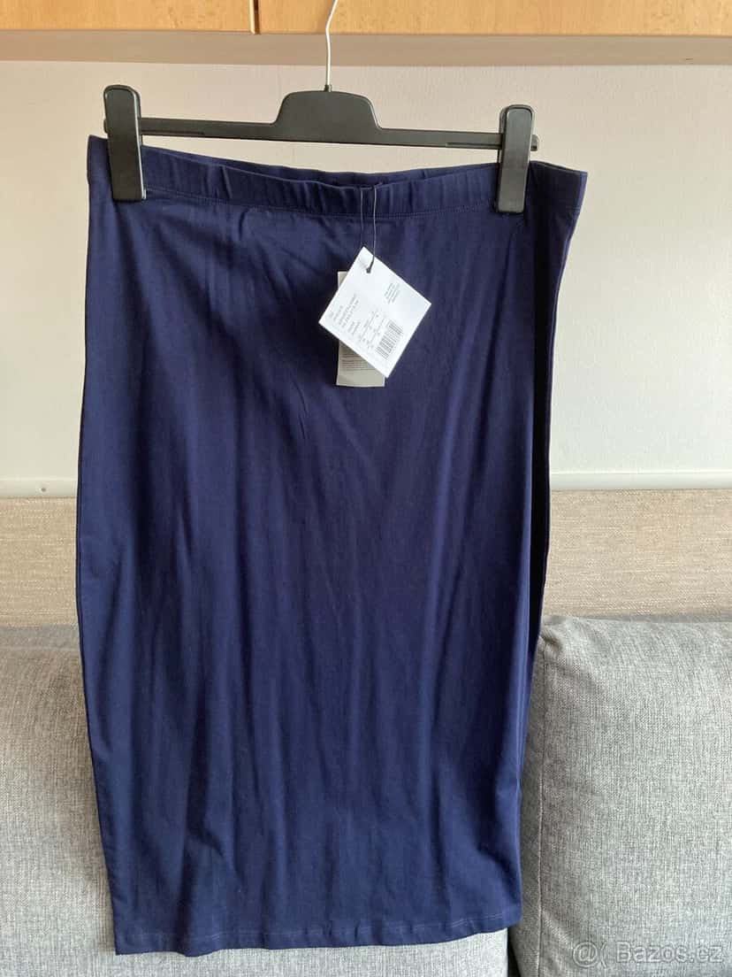 nová bavlněná úzká sukně, tmavomodrá barva, s visačkou, vhodné i jako dárek; na cedulce vel. L, ale spíš M/L; (obj. špatná velikost)
