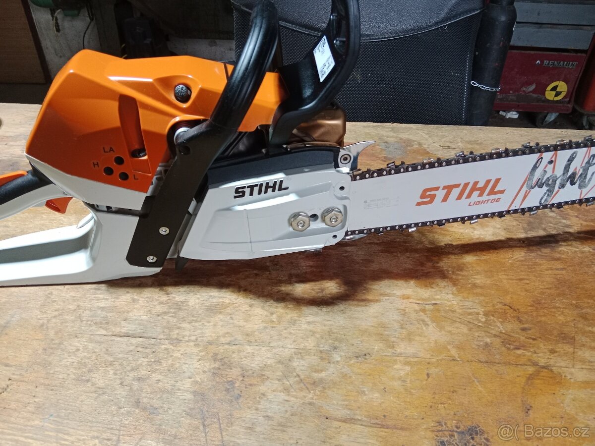 prodam jednou použitou profi pilu STIHL MS 363..obs..62ccm,, standartní lišta 40cm . u mě nevyužita,možnost ,bez lišty a řetězu,14000,,pevna cena!........................Dekompresní ventil pro snadnější startování Kombinovaný antivibrační systém STIHL pro výrazně snížené vibrace a únavu při práci Boční napínání řetězu pro snadné a bezpečné napínání. Bajonetový uzávěr palivové a olejové nádrže pro rychlé a snadné otevírání a zavírání bez nářadí Vylepšená geometrie zadní rukojeti a kolenních opěr pro lepší ergonomii a pohodlí při práci. Parametry: Délka lišty 40 cm Objem motoru 62,6 cm³ Výkon 3,5 kW Hmotnost 5,6 kg
