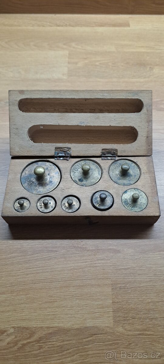 Prodám 2 sady starého závaží: první je kompletní,funkční zavírání, cena 500Kč,u druhého chybí malé závaží a jeden pant moc nedrží, cena 300Kč,Praha 5nebo zásilkovna