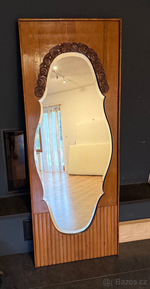 Starožitné zrcadlo o rozměru 67,5x173x6cm. Velmi pěkné. Dopravu lze telefonicky domluvit.