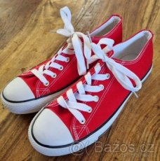 Prodam nadherne cervene letni damske/divci tenisky vel. 39, prijemne plataky s gumovou spickou,, vnitrni stelka 24,5cm. Nove, nenosene, pouze ustrihnuta cedulka zapomenute v skrini. (jsou tmavne cervene, ta druha fotka je presvetlena) Puvodni cena 400 Kc, nyni 190 + doporucene postovne 120 Kc nebo zasilkovna 65.