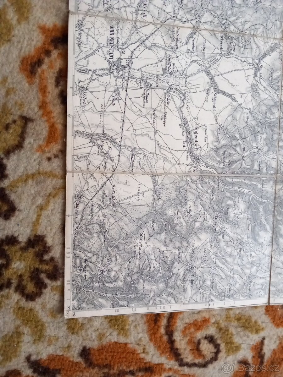 Nabízím hisrorickou originální topografickou mapu období Rakousko-Uherské. Mapa je kompletní, čitelná bez výrazného poškození. Je součástí 3 vojenského mapování Franzisko-Josefske mapy z let 1869-1887.Zobrazuje Šumperk, Uničov, Rýmařov a okolí.