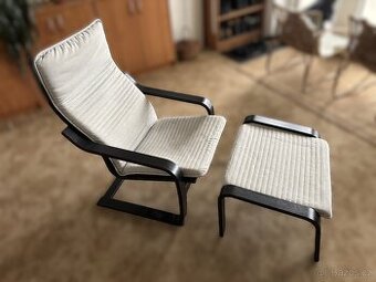 Málo používané křeslo Ikea POÄNG + podnožka Barva rámu je černohnědá, čalounění je světle béžové
