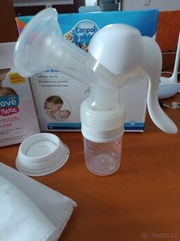 Ruční odsávačka mateřského mlékaKupovaná již použitá, já ji používala málo , určitě ještě poslouží Přidám i sáčky na mateřské mléko, odebrány asi jen 2