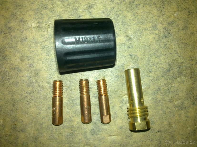 Cena: V textu. Prodám převlečnou matici M18x1,5, mezikus, 3x průvlak 1,0 - nepoužité Cena 100,- za všechno Prodám nepoužitou pojistku proti zpětnému šlehnutí. Cena 200,- Prodám měděné hroty k bodovačce. Cena 100,- za oba