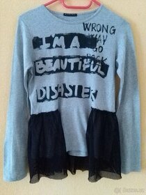 Prodám zánovní mikinu šedé barvy, zdobená krajkou. Vel.160, je jako nová.
