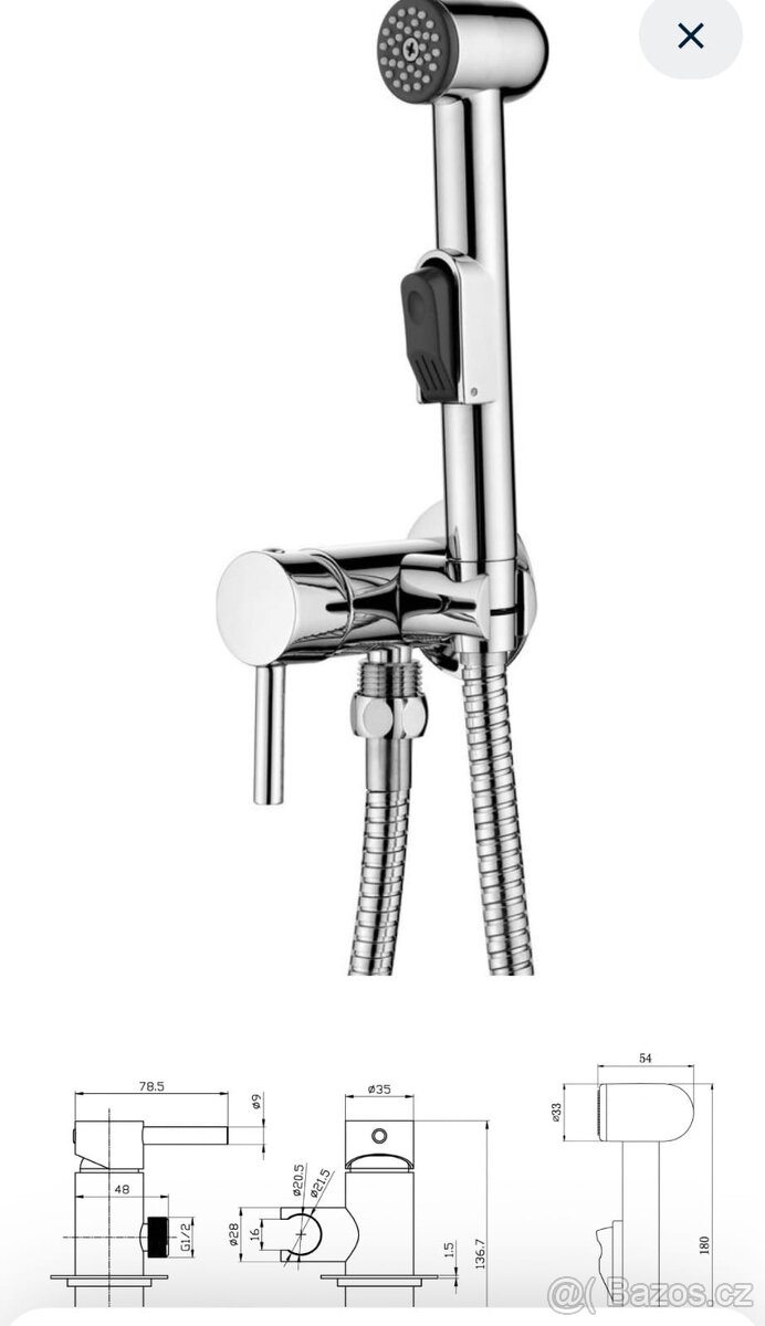 Popis produktu Aqualine Podomítková bidetová baterie se Stop sprškou, hadice 1,2m,