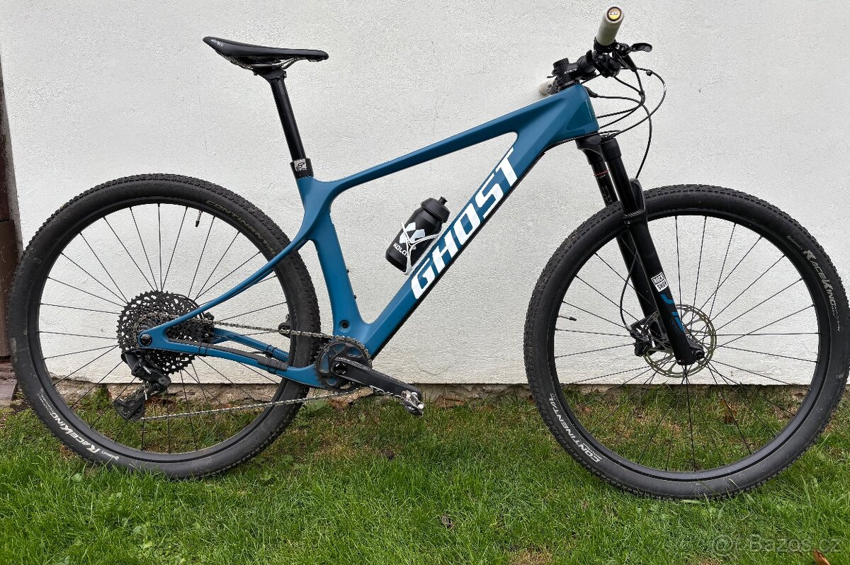 Dobrý den, prodám zánovní kolo GHOST LECTOR SF LC UNIVERSAL - Sky / Star White v TOP stavu s teleskopickou sedlovkou. Kolo je bez škrábanců, po výměně řetězu s plášti na 90%. Vidlice: Rock Shox SID Select RL Onelo 120mm Přehazovačka: SRAM GX Eagle 12-S Řetěz: SRAM GX Eagle Brzdy: Sram Level TL 2/2 Piston 180 / 160 mm Disc Řídítka: Ground Fiftyone flat bar Dia. 31.8 mm 760 mm Gripy: ESI bílé Představec: Ground Fiftyone Dia. 31.8 mm Sedlo: Selle Italia SLR Adjustable Kotouče: SRAM Centerline 180 / 160 mm Zdvih přední: 120 mm Velikost: L Plášť přední/zadní: Continental Race King Počet převodů: 12 V případně jakýchkoli informací o kole, mne neváhejte zkontaktovat.