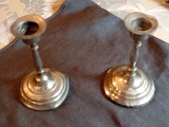 Cena: Nabídněte. Staré svícny (kov) výška 10cm