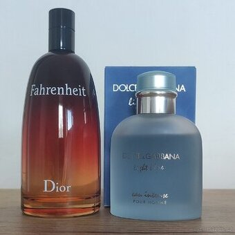 Prodám dva originální pánské parfémy ve velmi dobrém stavu: Dolce & Gabbana Light Blue Pour Homme EDT 100 ml – svěží, lehká a energická vůně ideální na jaro a léto. Málo používaný, velmi dobrý stav. Dior Fahrenheit EDT 200 ml – ikonická, výrazná a mužná klasika. Téměř nepoužitý, prakticky jako nový. 📦Oba parfémy byly zakoupeny na Notino, jsou staré méně než rok a byly skladovány ve tmě a suchu. 💰 Prodávám oba dohromady za 2 490 Kč. 📍 Brno a okolí