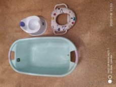 Mohlo by se Vám hodit, nejen domů, ale třeba i na chatu, chalupu :-) Nabízím - prodám, všechno jako nové: setík - mix věcí pro Vašeho drobečka :-) na koupání i na záchod. 1.tyrkysová plastová vanička, 2.lehátko, 3.nočník Bambino mio,4.WC sedátko/adaptér, polstrované, měkké, 5. plastová stolička. Vše je jako nové. V případě zájmu prosím sms nebo tel.: 724739309. Bývám na cestách po celé ČR, mohu i zavézt. P.S. Podívejte se i na další moje inzeráty. Množstevní sleva možná:)