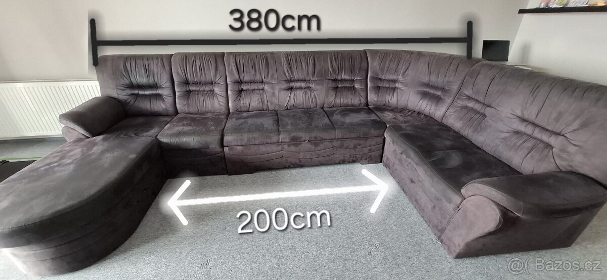 Prodame tuto zachovalou velkou sedačku potah černý mikroplyš,rozkladatelná na dvojlužko,plus uožný prostor.pevná neprosezená!
