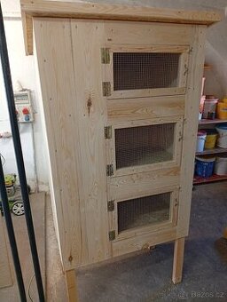 Prodám novou tří kotcovou boudu určenou na chov králíků, křepelek, morčat atd. Střecha je pokryta asfaltovým šindelem. Rozměry: Délka: 95cm Hloubka: 55cm Výška: 195cm Možno dovést po okolí.