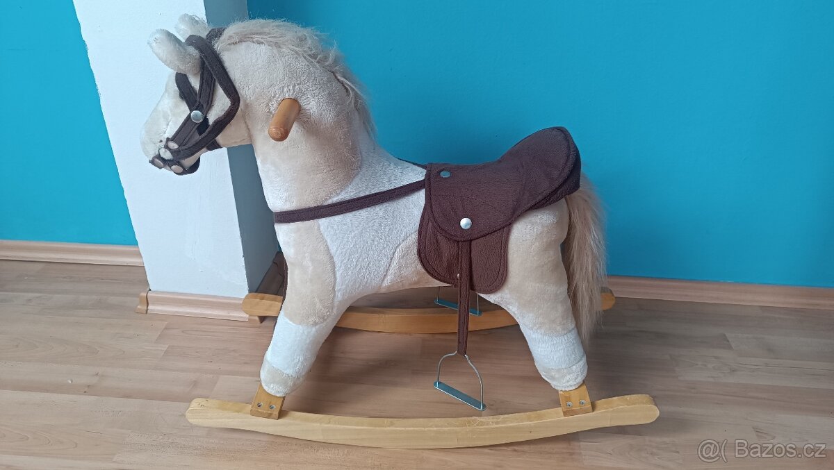 Houpací koník pro děti od 2 let. Výška 60, délka 67, hloubka 28 cm. Zvukové tlačítko už nefunguje, jinak je ve velmi dobrém stavu.