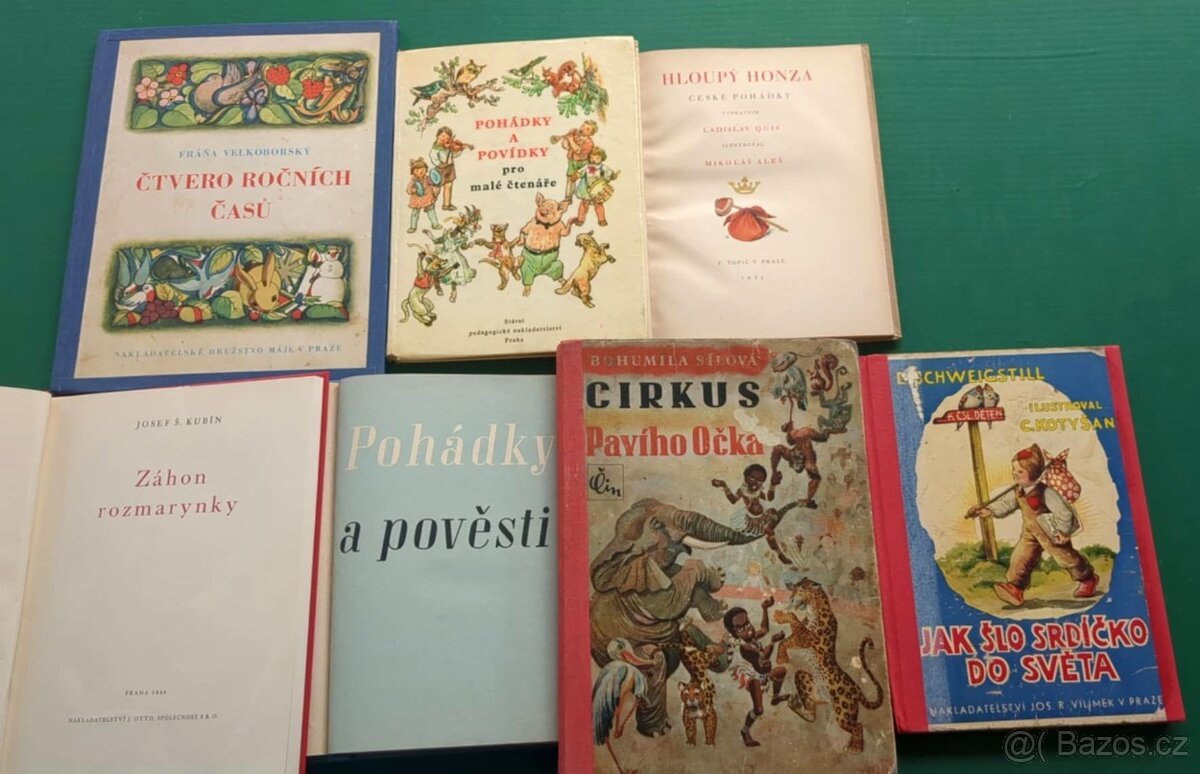Cena: V textu. Knihy jsou zachovalé, popř.odborně opravené, částečně opotřebované, vazby v dobrém stavu. Ceny: Pohádky a povídky pro malé čtenáře - prodáno (několik listů počmáraných tužkou) Hloupý Honza - 80,- Záhon rozmarynky - 80,- Pohádky a pověsti - 80,- Cirkus Pavího Očka - 80,- Jak šlo Srdíčko do světa - 100,- Čtvero ročních časů - prodáno