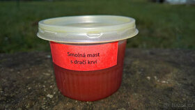 Dračí krev mast nabízím z přebytků.Použit základ smolná mast ve žluté vazelině 50% a lékařské vazelině 50%.Posílám Zásilkovnou na výdejní místo.Platba předem na účet včetně dopravy.Osobní odběr po dohodě.Na SMS nereaguji.