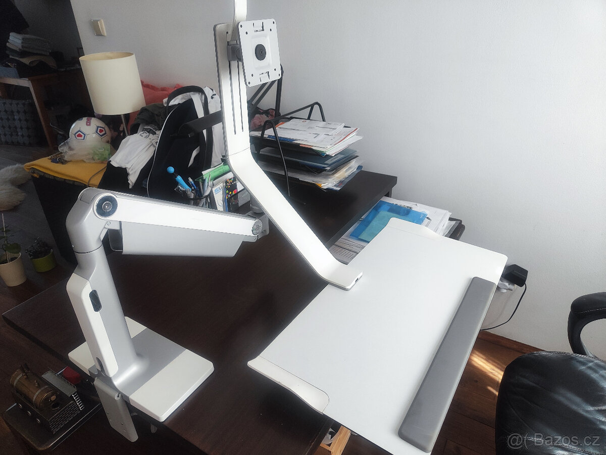HUMANSCALE Quick Stand Lite - bílý - 5 HUMANSCALE Quick Stand Lite - bílý - 6 Pracovní stanice Quick Stand Lite pro sezení / stání představuje revoluci v současných pracovních stanicích, které vytvořilo designové studio společnosti Humanscale. Stačí ji připevnit k jakémukoli stávajícímu pracovnímu povrchu a rázem máte chytré řešení pro původně pevný stůl. Pracovní stanice Quick Stand Lite umožní uživateli snadné střídání poloh při sezení a stání, podporuje vyvážený pohyb po celý den a esteticky zapadá do pracovního či domácího prostředí. Sofistikovaný systém managementu kabelů šetří cenný čas uživatele tím, že jej stačí pouze zapojit. Robustní konstrukce představuje spolehlivou investici do zdraví a pohody zaměstnanců. Quick Stand Lite, provedení pro jeden displej, (do 10 kg) pracovní deska v rozměru 430x796 mm, bílostříbrná, upevnění na svěrku. Stojan je starší,původní cena 15500,-