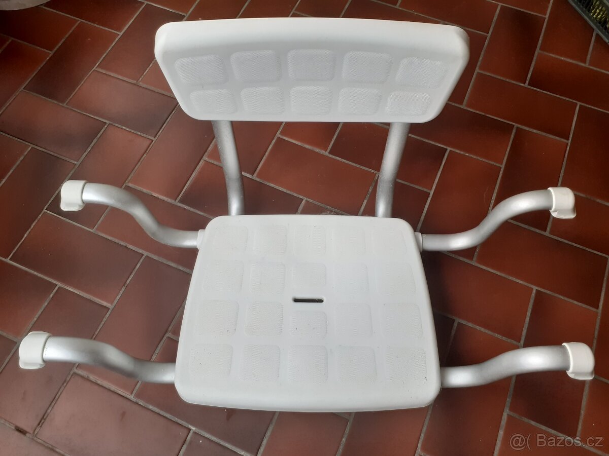 Sedák na vanu pro špatně pohyblivé osoby, materiál hliník/plast, rozteč opěrných patek 68 a 66 cm. Nosnost max. 150 kg, cena 200,- Kč .