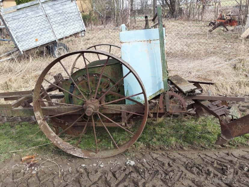 Cena: V textu. Prodám tažený sazeč brambor. Plně funkční. Sadí pěkně. Pohon sazeče je od kol. Lze předělat i do třech bodů do ramen. Cena 7500Kč.
