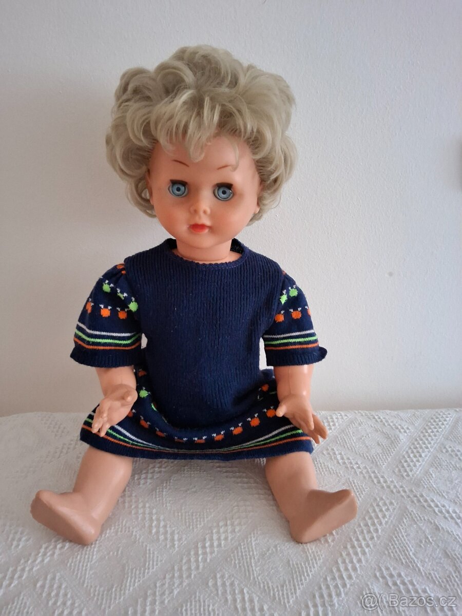 Prodám krásnou retro panenku v růžových šatičkách.. 55 cm vysoká, mrká. Bez vad jen jsou trochu uvolněné ruce. Cena 389 Kč. Modré úpletové retro šatičky můžu prodat samostatně za 119 Kč. Posílám balikovnou za 75 Kč, nebo zailkovnou za 89 Kč.
